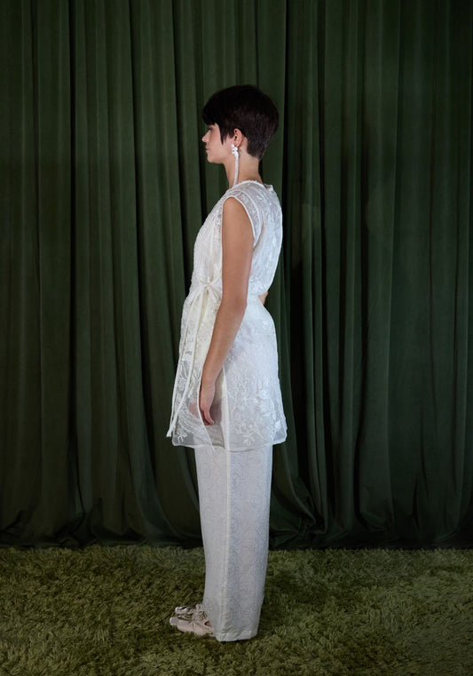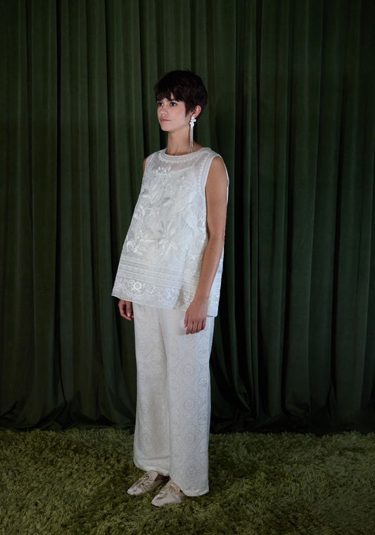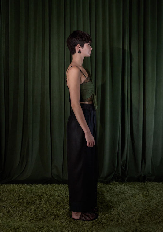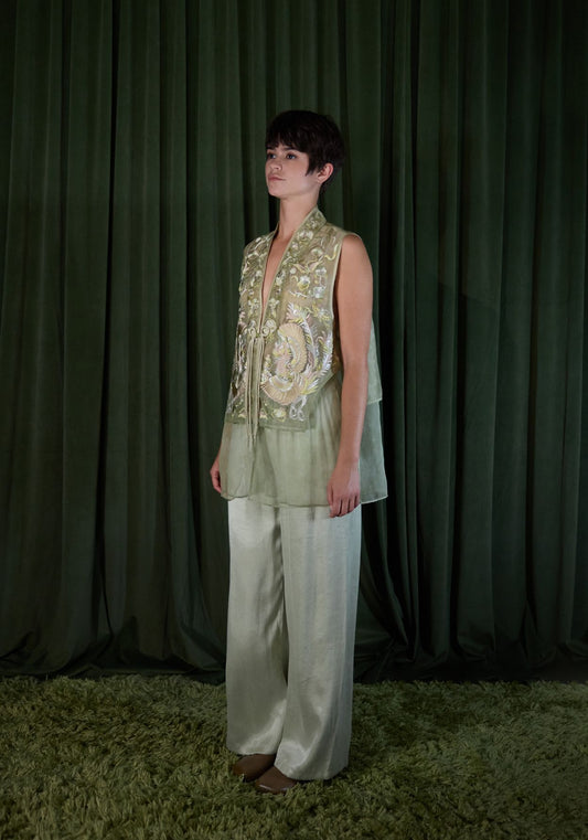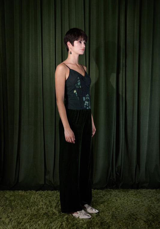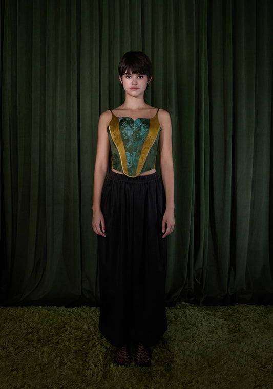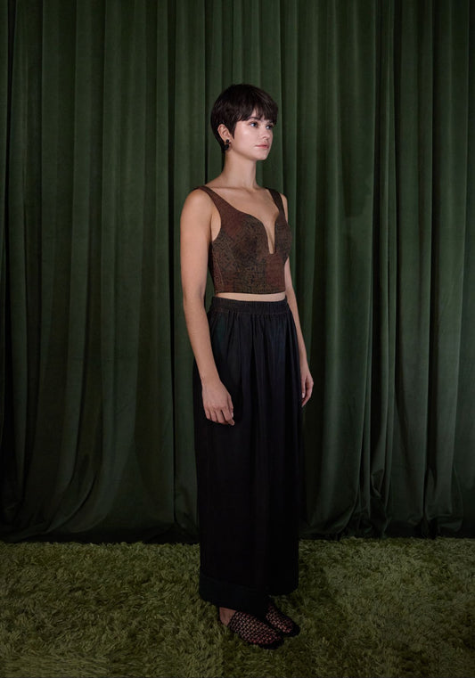 Brown Sleeveless Wrapped Top with Green Jacquard