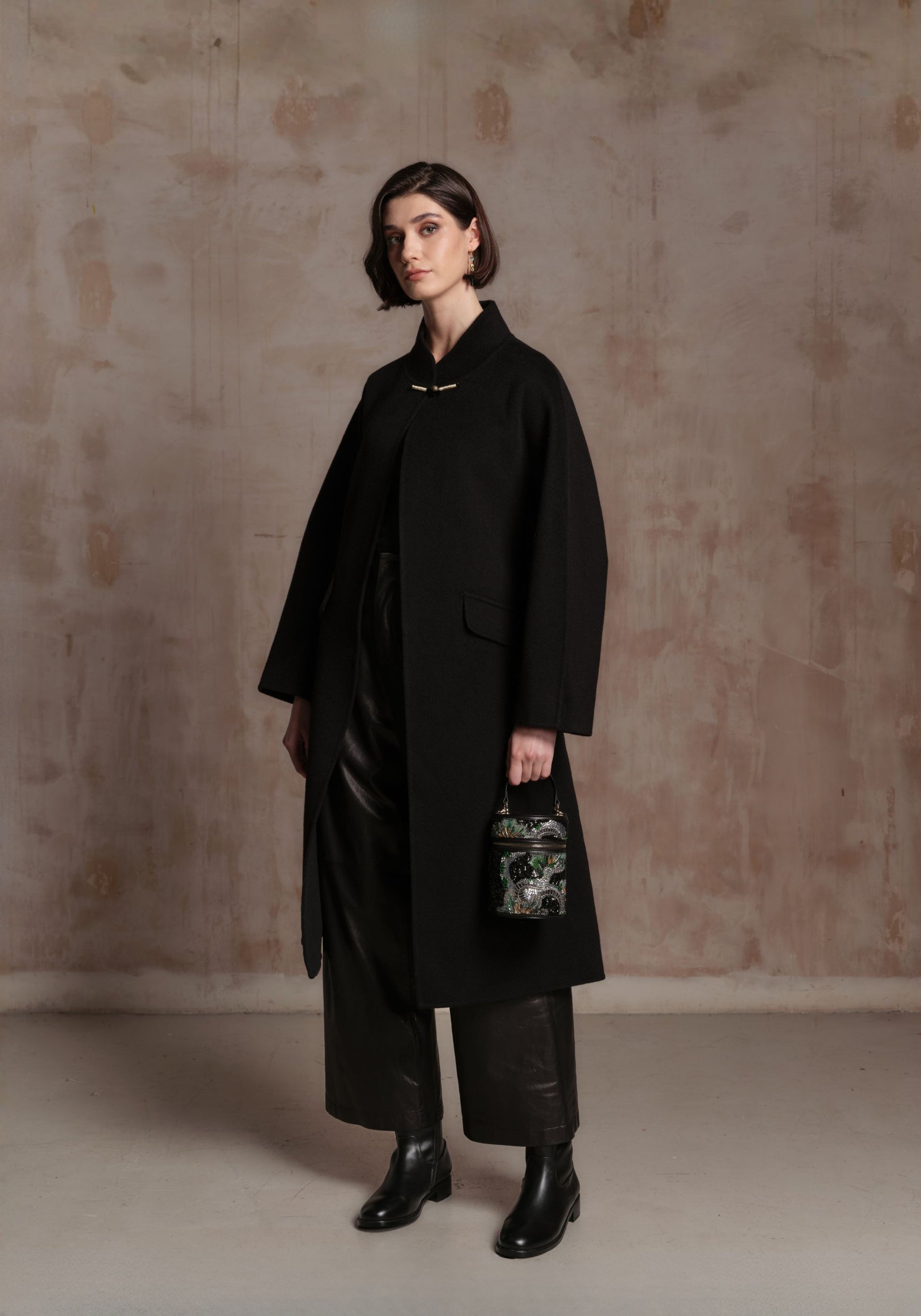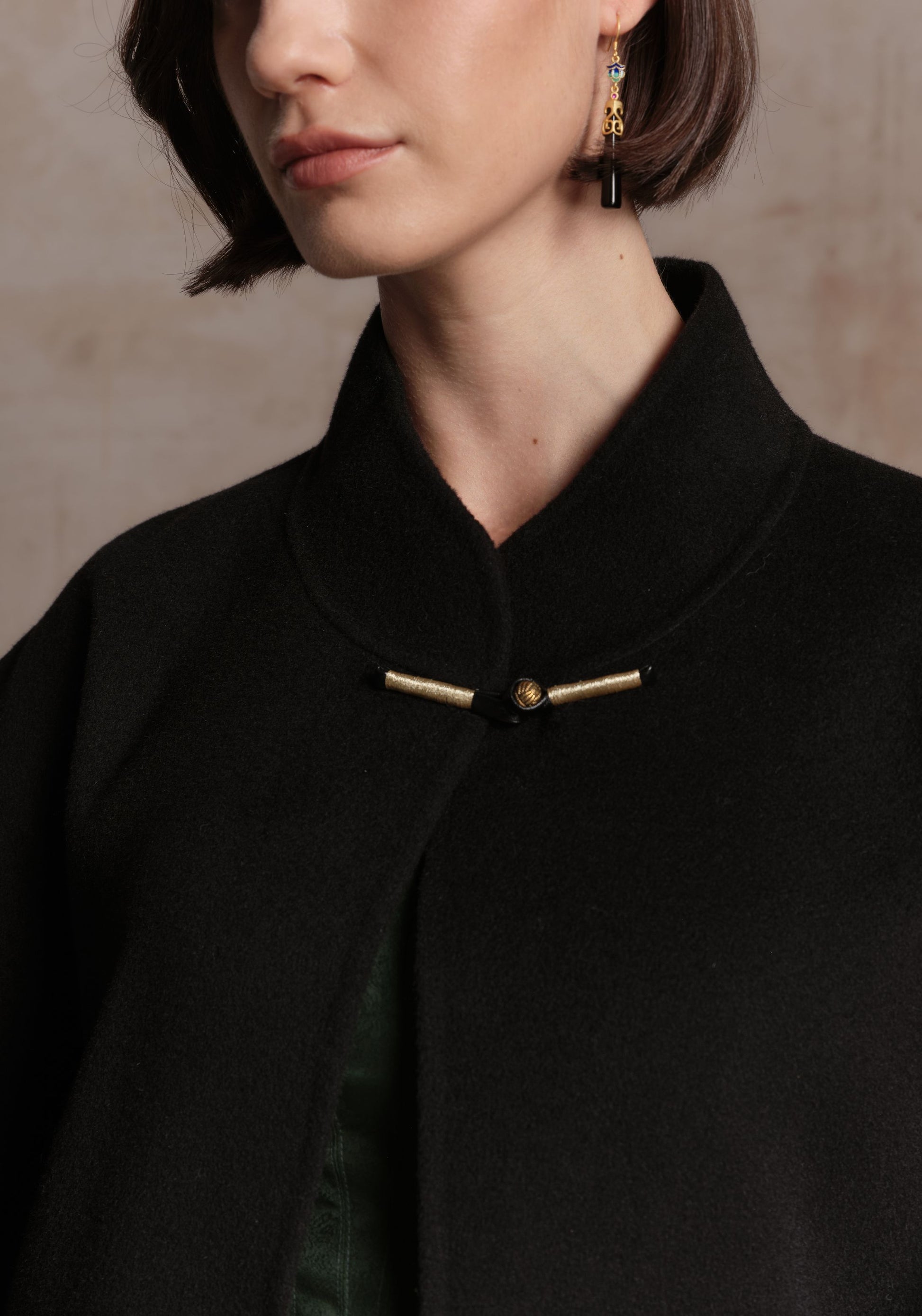 A wool-cashmere blend coat featuring traditional Chinese style toggle details and a clean, minimalist silhouette. Soft, warm, and effortlessly refined, it brings subtle elegance to any winter wardrobe.