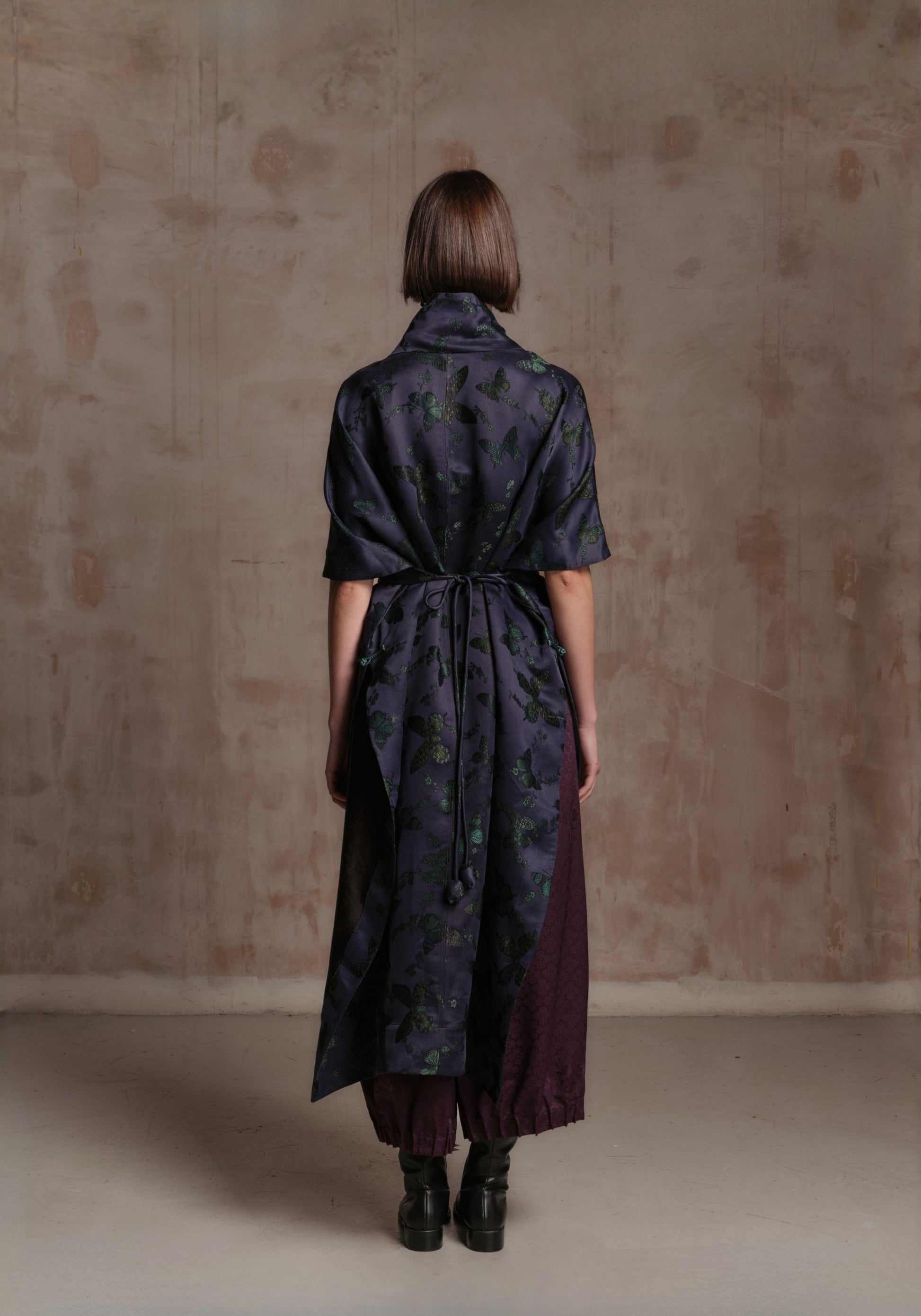 Elevate your wardrobe with this distinctive kimono crafted from 100% mud-dye silk. Using a traditional natural dyeing method, each piece carries a unique depth of color and an organic, earthy character. The luxurious silk fabric offers a soft drape, subtle sheen, and an effortless flow with every movement.
