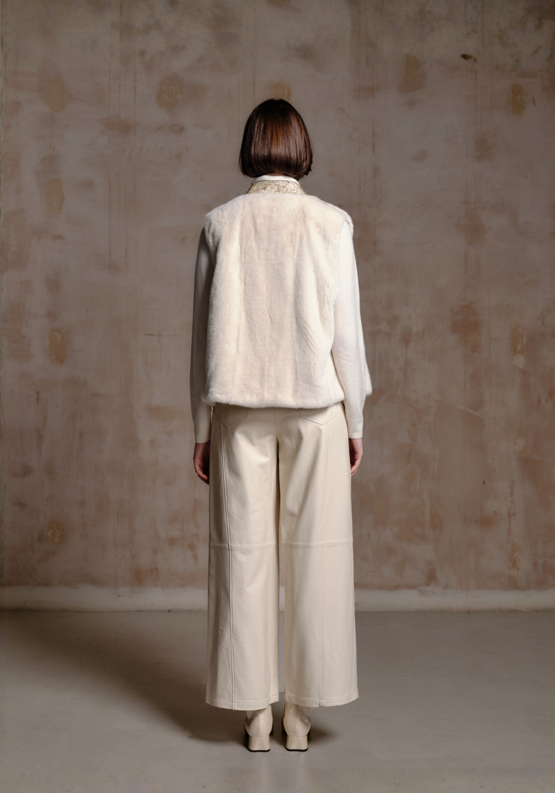 White Fur Vest with Beading Details