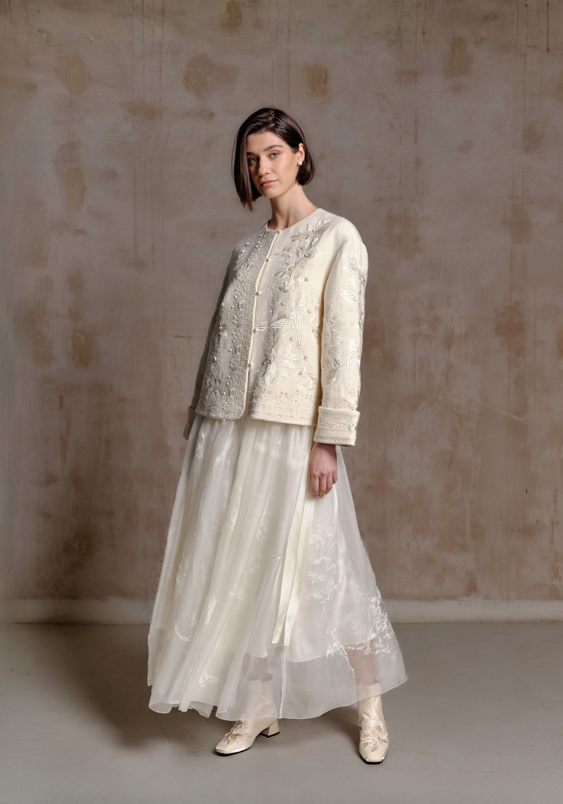 Cream Wool Jacket with Beading Details